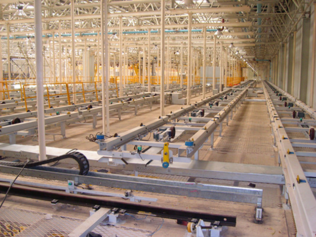 此項目為滑撬線體加移載小車和升降機,將涂裝車間的車頭移載到存儲區(qū),根據(jù)總裝需求再移載下降到地面總裝。