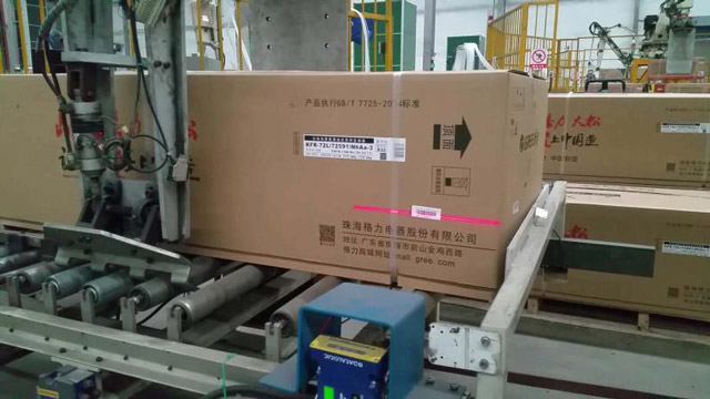 本項目由我公司于2015年底起,歷經(jīng)半年,在蕪湖格力率先自主研發(fā)成功并逐步完善,至今已有七條線正常運(yùn)行,武漢格力的樣板線也已正常運(yùn)行。項目分為兩部分,一是在檢漏段將條碼與生產(chǎn)數(shù)據(jù)庫進(jìn)行對比,將不合格品剔除到返修線,達(dá)到預(yù)先篩選的目的;二是在機(jī)器人抓取段,掃碼槍讀取條碼后機(jī)器人再抓取,滿垛后自動將數(shù)據(jù)堆棧并傳送給上位生產(chǎn)數(shù)據(jù)庫,對不合格品進(jìn)行記錄并報警給人工處理。工控機(jī)系統(tǒng)涉及開發(fā)新的程序和界面, 修改PLC與機(jī)器人控制程序,并與掃碼槍和MES系統(tǒng)緊密配合,實現(xiàn)自動掃碼上傳。